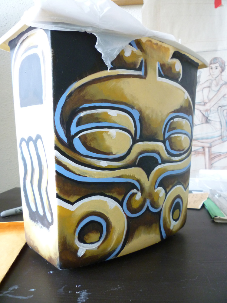 And when I got back from Saturna, David had painted this garbage can and left it on my desk. I’m preparing my response, now.