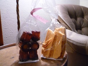 Things from Ganache. Fluffy little rum vanilla cakes of some sort, and sponge toffee. Whenever I go downtown, it becomes a quest for tasty things.