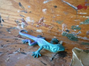 A mysterious person of ill repute left a lizard on the edge of my easel.