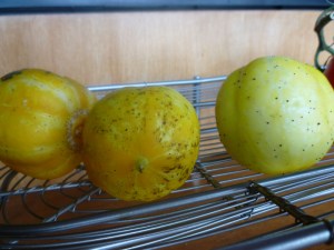 These weren’t grown here, but apparently they’re some kind of weird, prickly cucumber.