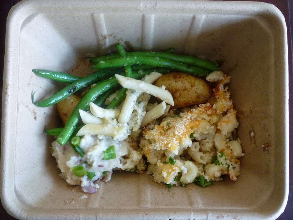 From the Whole Foods hot bar. As called by Claire, a trough. Looks like not that much in the photo, somehow, but I assure you it was enough to bankrupt me for the week, and it feels like a tidy little basketball, now, in my stomach.