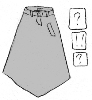 I think I must be going a little whoopsy in my old age, because I have an enormous fixation with this skirt. Come on, dude, what’s going on with that? I don’t wear skirts. Those are for girls, who have cooties, and are, like, totally gross. But what can you do, I’ve checked on this every day for the past three months, to make sure my size is still there. I don’t know why, it’s not like I can afford it under any circumstances. But if it sells, man, I will be seriously depressed.