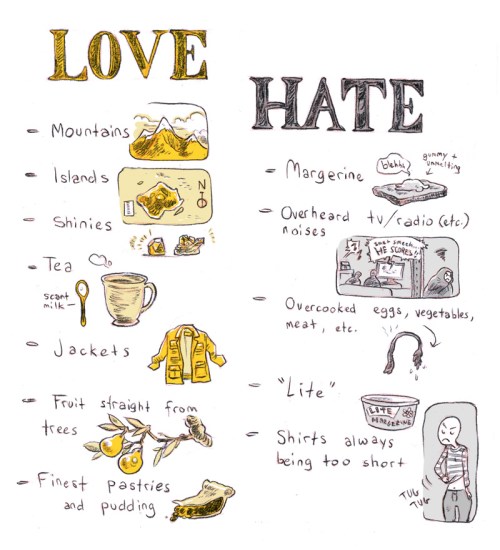 You all should tell me your love/hate lists. Come on, let’s have them!