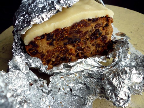 Fruitcake. Why is nobody but me ever excited about it? It has all the right virtues (it’s unecessarily rich and calorific. It’s pain in the ass to make and/or expensive to purchase. Marzipan is optional). Oh well. All the more for me, suckers.