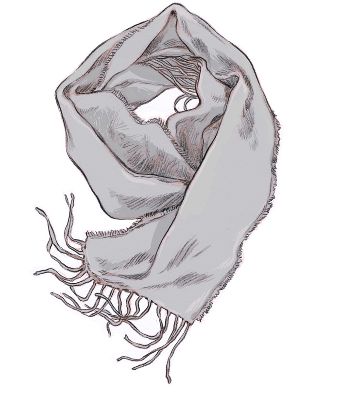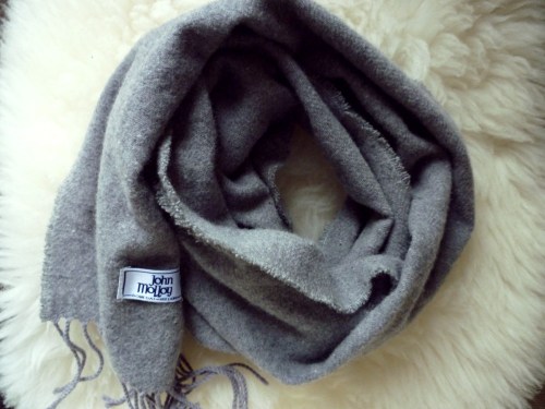 Here’s the scarf, real-time. It is probably the most perfect scarf ever made. It’s hard to tell here, but the weft yarn and the woof yarn are very slightly different shades of grey.