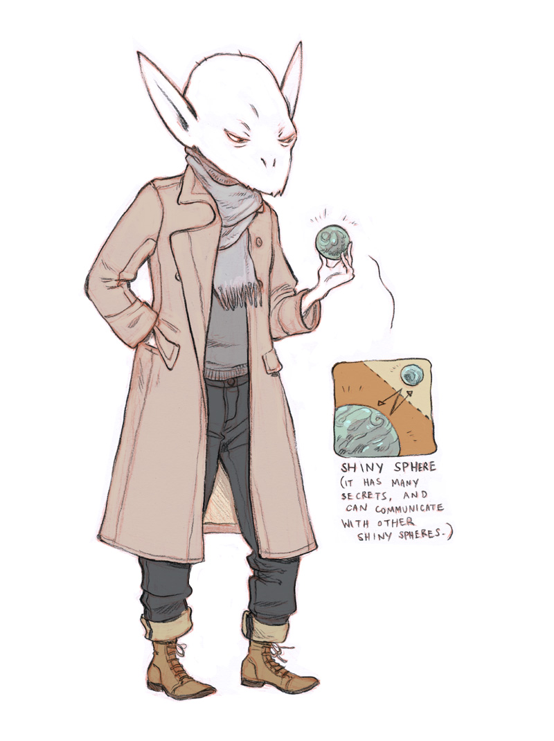 The goblin will model it for us (also wearing this Yoshi Kondo coat that I see in the Lark window every day [in the same range as the jacket I drew here. It’s that mysterious shade of rose-taupe that really makes it stand out, and I still want it with the burning passion of a thousand exploding suns]).