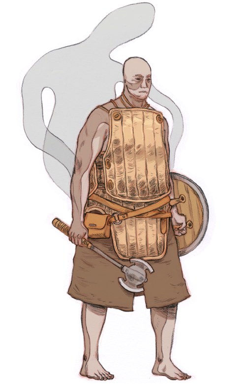 i would have a gateperson that knows how to trick his ghost into a temple shield, worn in his travels but never actually fielded in combat. a strange light sometimes flickers from one of the many holes in the worked wood. through the night, it’s a reassuring prescence – a window for his ghost…