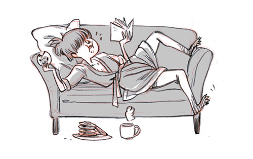 I’m not sure why I don’t own one already, when I have to ferry my naked, cooling body between the bathroom and the bedroom three times a day. Maybe because I know it will be a slippery thing, and once I’ve tied a robe on, why rush into clothes? Why not just hang out in the robe, and eat my dinner in it, and flop around, and work, and read my books, and take a trip to the corner store for M&Ms? It’s a hazard I’ll have to accept, I guess.