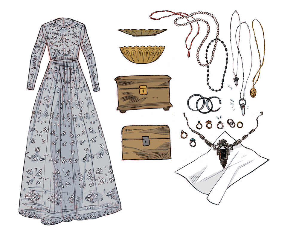 4. I support this hoard and this dress. In my brain those elaborate sheer sparkly dresses are what the ancient elves wore in Arlathan. XD <3