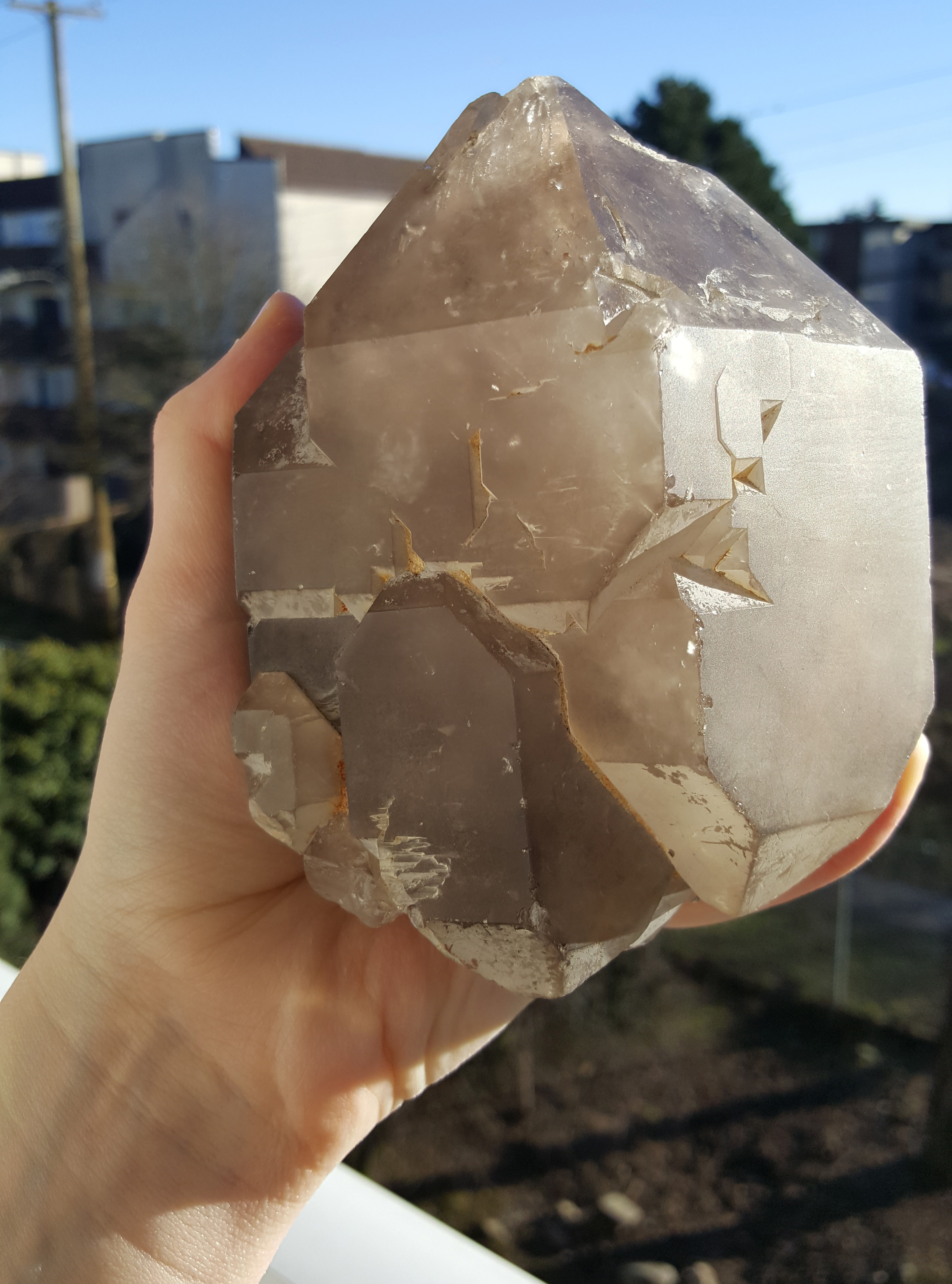 I’ve had a lot of requests, over the years, to list all my shinies. The only problem is, I’m a monster, and my shiny collection has spread so far beyond my control that I’m not even sure where it ends and I begin. So to save us from these grave existential questions, I’m going to try something more modest, and regularly highlight some of the best ones, starting with this giant wodge of smoky quartz.