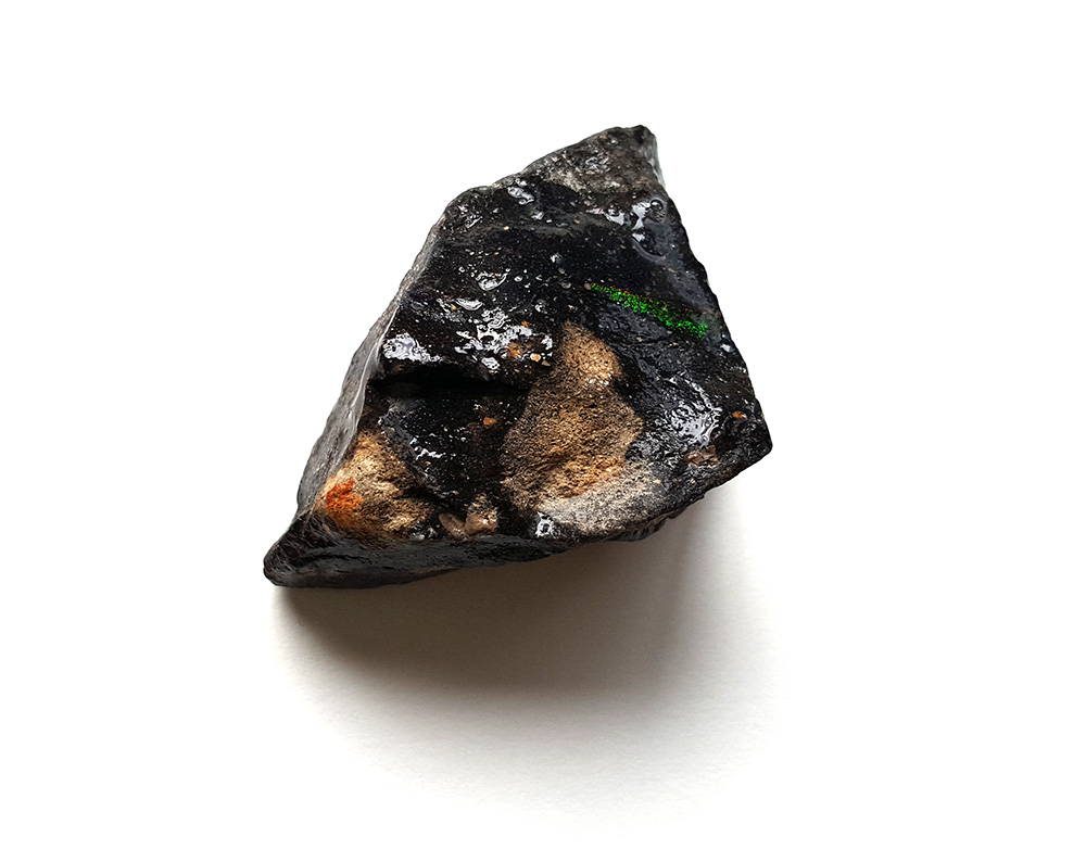 Also, why not, here’s a bonus piece of rough black opal. It’s really difficult to photograph, but you can see a little streak of shininess in there.