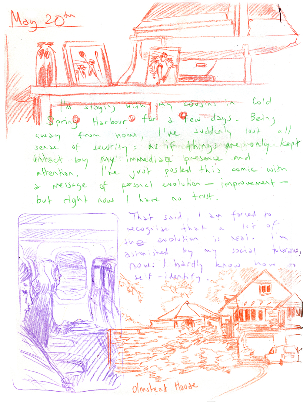 I wrote some diary comics for a class assignment earlier this year. I’d never previously had much interest in diary-anything, but I found the exercise really interesting and helpful so I’ve repeated it a few times since.