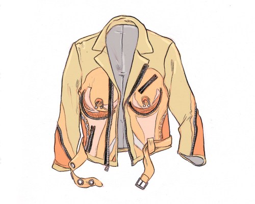 Anyway, this jacket certainly doesn’t match my usual aesthetic (androgynous and plain in the extreme), but I think it’s very pleasant and wearable, even in its tits-out weirdness. Especially in its tits-out weirdness. Plus, you know. I draw a lot of topless women, so maybe I should put my money where my, uh, tits are.
