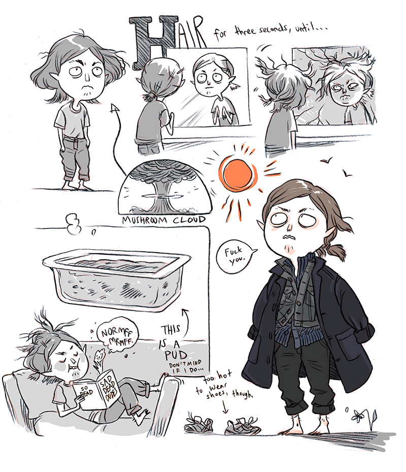 You know, as I post outfits on a regular basis, I’m gradually remembering why I employed the goblin model. I find that I have a lot more trouble drawing myself (vs the goblin) in anything remotely unconventional, plus, I feel the need to be brutally honest about my awkwardly growing hair (which will almost sort of stay tucked behind my ears, now, but not quite). It’s all cramping my style, as it were. It might be time to step out of the human suit, and resume business as usual, though I’ll still draw my giant angry bobble head in other contexts.