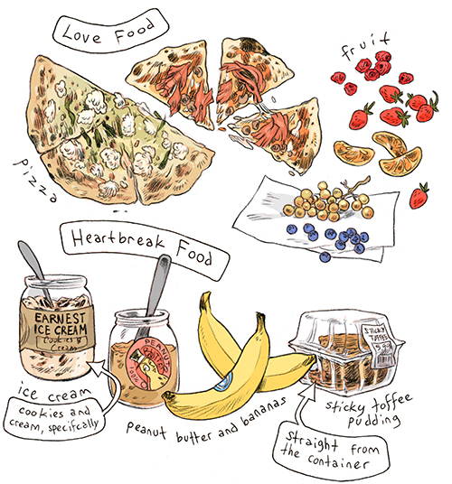I was listening to Dolly Alderton’s “Love Stories” podcast the other day, and she asked one of her guests (I’m paraphrasing loosely) what foods she ate when she was in love, and correspondingly what foods she ate when she was heartbroken. I liked this a lot and wanted to add my own version to the Hchom book, extending the list to include other categories. Yes, I am one of those disgusting people who gorges while reading, and you can suss out my favourite books by their smears!